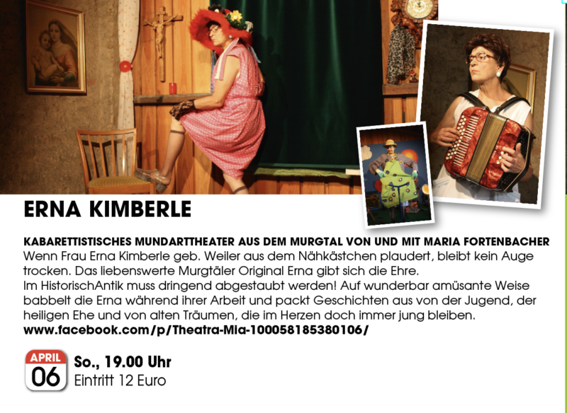 KABARETTISTISCHES MUNDARTTHEATER AUS DEM MURGTAL VON UND MIT MARIA FORTENBACHER [...]